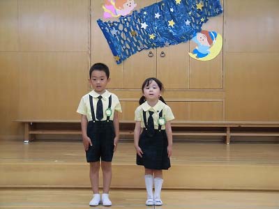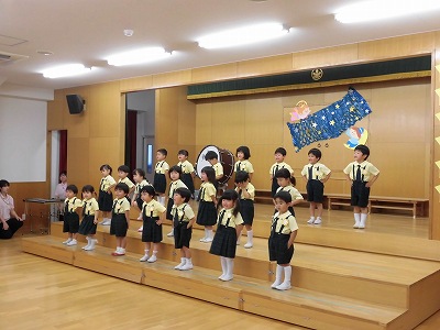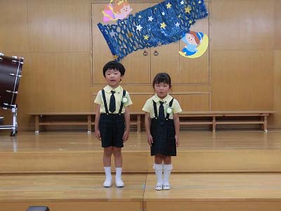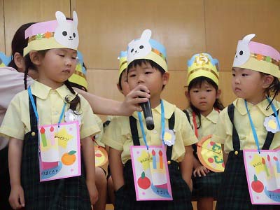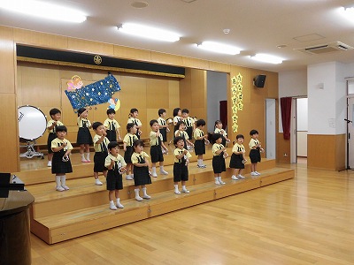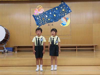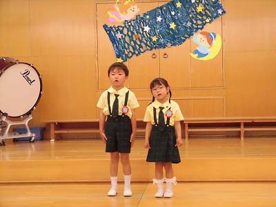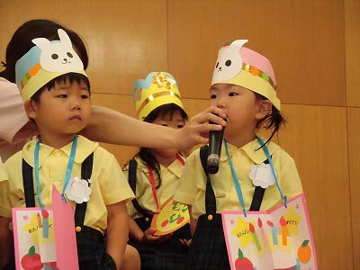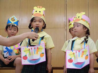 誕生児の自己紹介です。「〇〇組の△△△△です!□歳になりました!」「大きくなったら~になりたいです!」と元気に発表してくれました☆