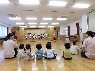 今日もお客さんは子どもたち☆出演クラスはいよいよ自分たちの番だと張り切って舞台へ上がりました!
