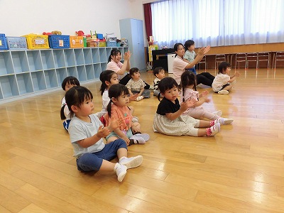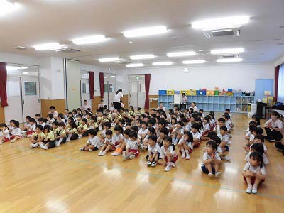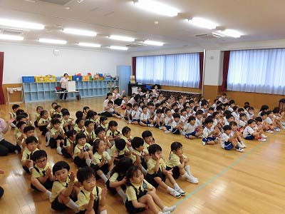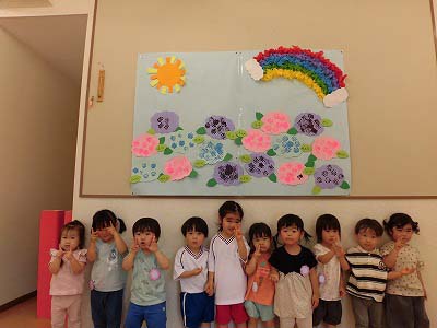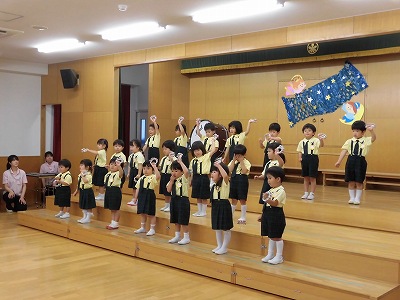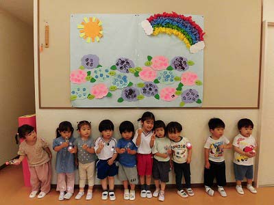 今日は全園児がホールに集まり6月のお誕生会を行いました!