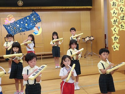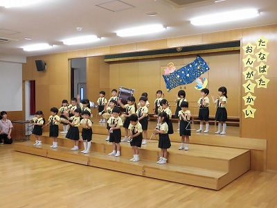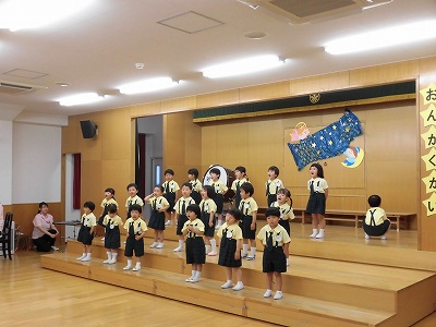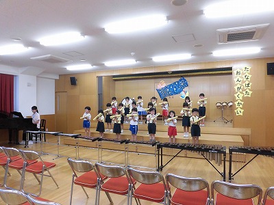 今日は音楽会のリハーサルを兼ねたこども音楽会です♪お客さんは子どもたちと先生。出演クラスの子どもたちは、たくさんのお客さんに見てもらえるとあって朝から張り切りモードです♪
