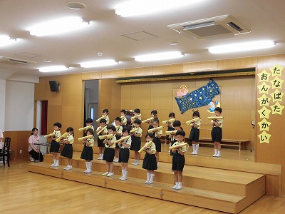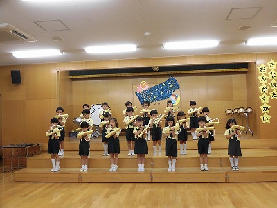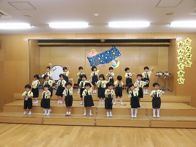 ホールで音楽会のおけいこ中です。本番に向けて演奏はもちろん、立ち方など細かい部分も意識できるようにがんばっています☆