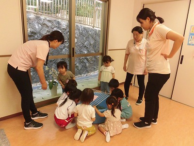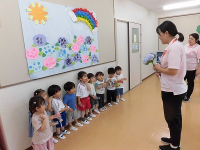 「これがこの前みんなと作った❝アジサイ❞だよ☆」と先生が持ってきてくれたアジサイを見て「うわ~♡」と喜ぶ場面もありました♪