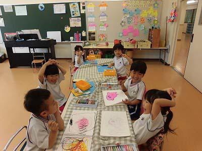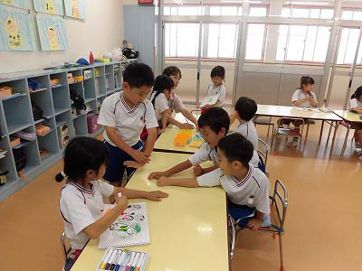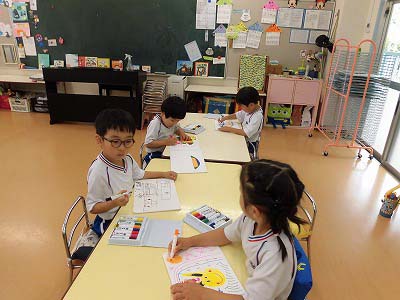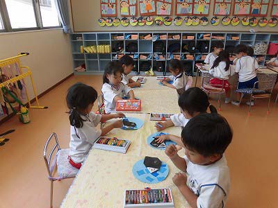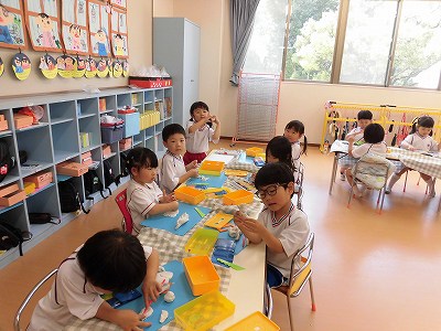 ワークが終わったお友だちから絵本や粘土などで自由に遊んでいました。お友だちと一緒に絵を描いたり、おしゃべりで盛り上がったりと楽しそうな子どもたちです♪