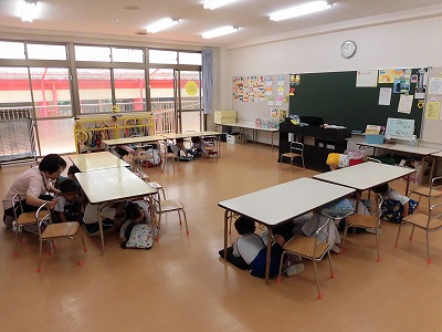 まずは緊急時の避難方法、命を守る大切さを各クラスでしっかりと伝えます。
