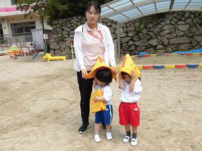 今日は地震発生を想定した避難訓練を行いました。子どもたちも職員も緊急時に落ち着いて命を守る行動をとれるように、禅昌寺幼稚園では避難訓練を繰り返し行うようにしています。