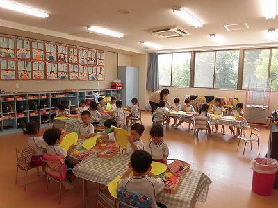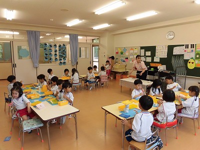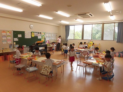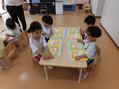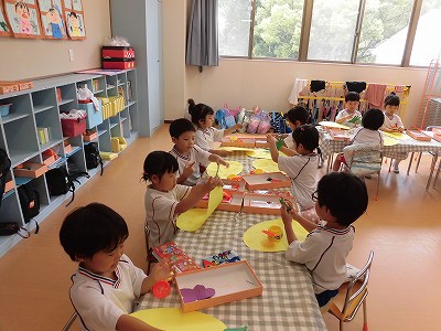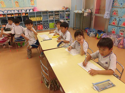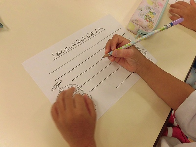 お部屋に戻り実際に「タイムカプセル作り」!1年後の自分に向けてお手紙を書こう!ということで「面白そう!」と盛り上がる子どもたちでしたが、いざ鉛筆を持つと「う~ん、何て書こう…」と悩む子がたくさん。みんな一生懸命に考えてメッセージを書いていました☆