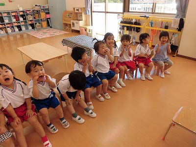 年中さんは2回目とあって落ち着いて検診を受けていました。「歯医者ぜんぜんこわくないし!」と言っていた子どもたち、さすがです♪(後から「でもほんまはちょっとだけドキドキした…」と教えてくれる子も…かわいいですね♡)