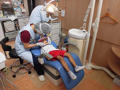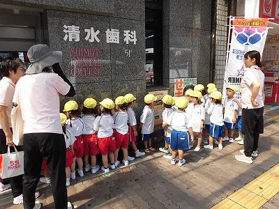 今日は年少さんと年中さんの歯科検診。設備の整った歯科医院まで行き、一人ひとりしっかりと診てもらいます!