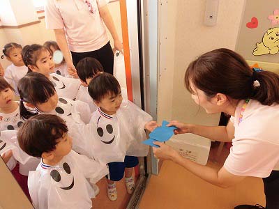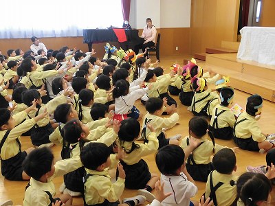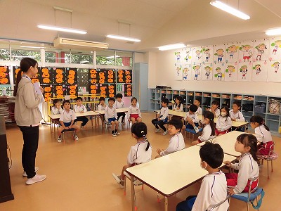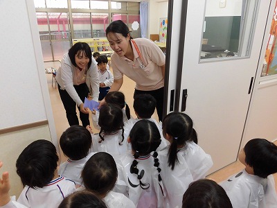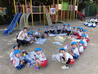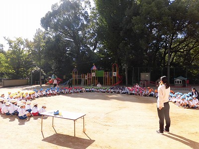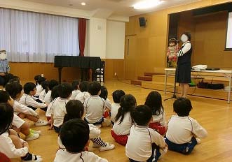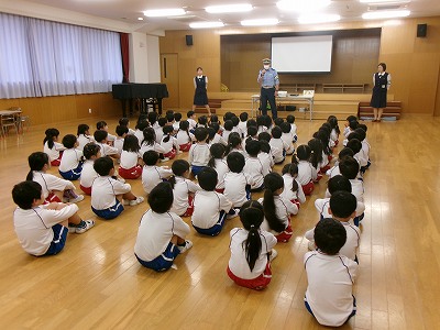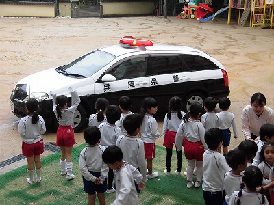 今日は須磨警察署の方にお越しいただき年長さんを対象に交通安全教室を開いて頂きました。面白いマジックなども交えながら交通ルールをしっかりと教えてもらいました!