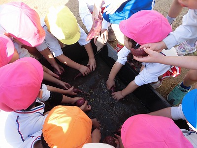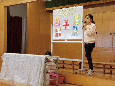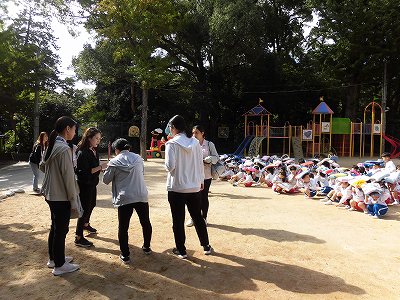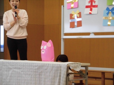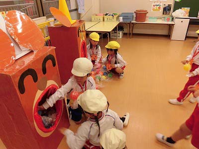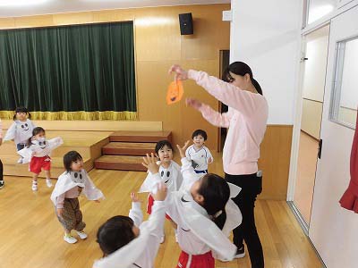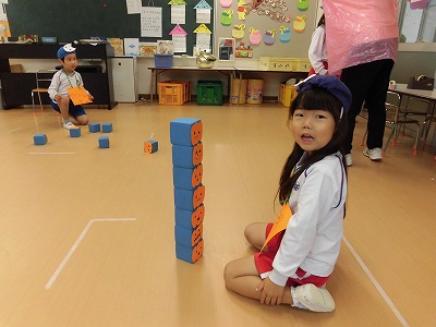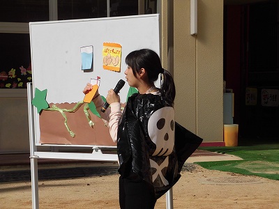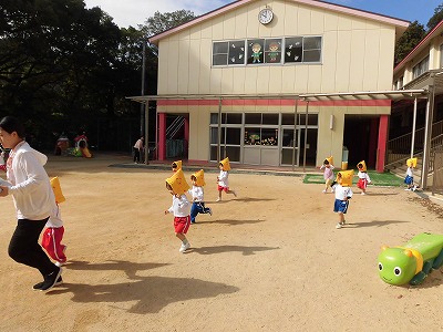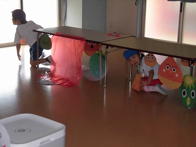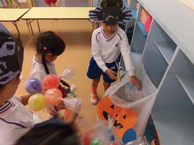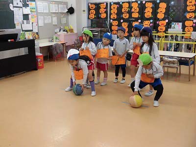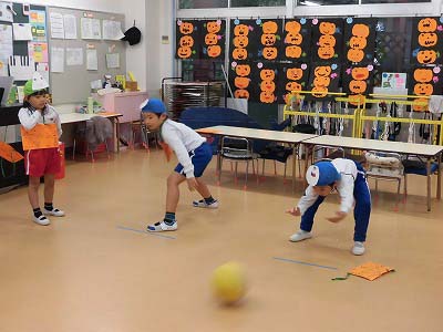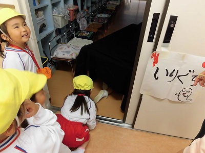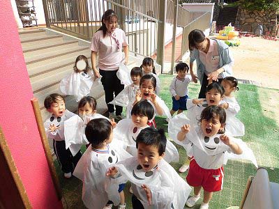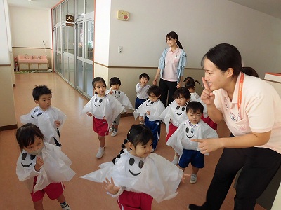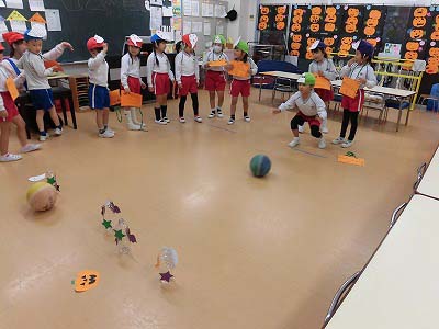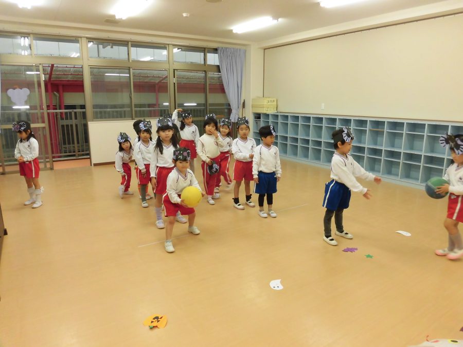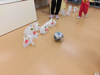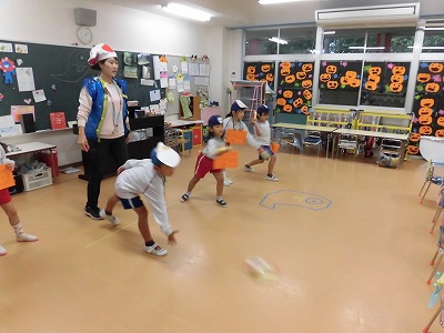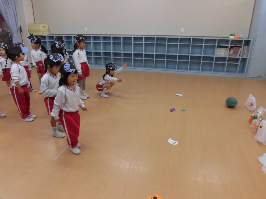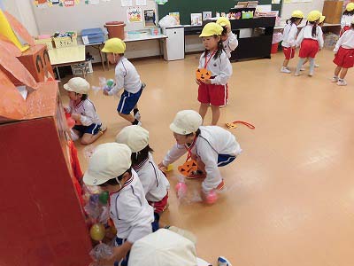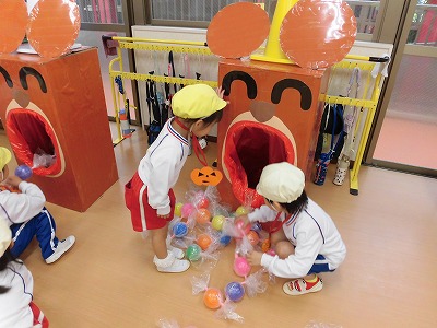 「おばけやしき」・「たおせ!おばけ!ゲーム」・「かぼちゃつみあげゲーム」・「おばけすべり」などいろんなお楽しみを回って大盛り上がりの子どもたちでした♪