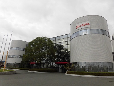 グリコピアに到着!まずは記念写真。後ろの3本のポールはよく見るとポッキーになっています☆