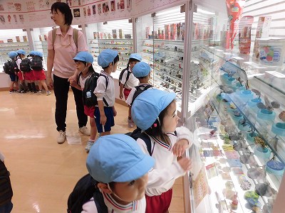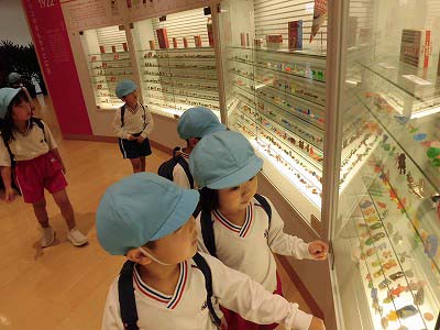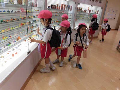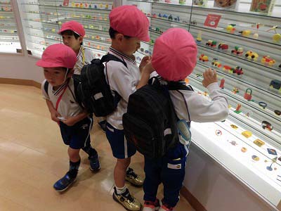 歴代のグリコの「おまけ」の展示を見ました。「車がある!」「阪神タイガースの人形もある!」と子どもたちは嬉しそうに見ていましたよ☆