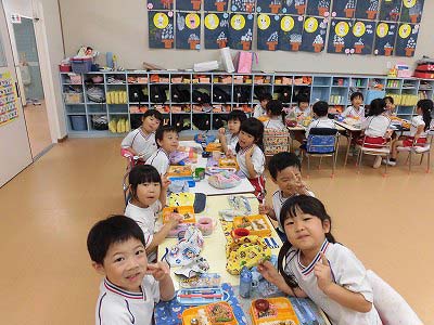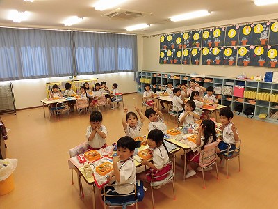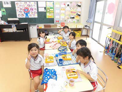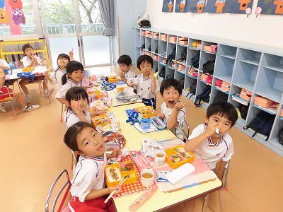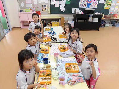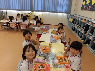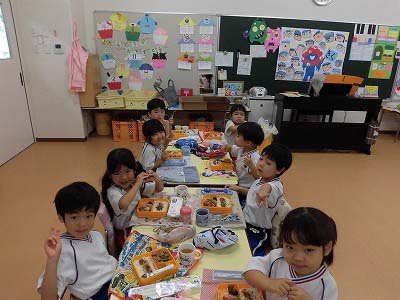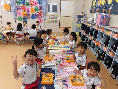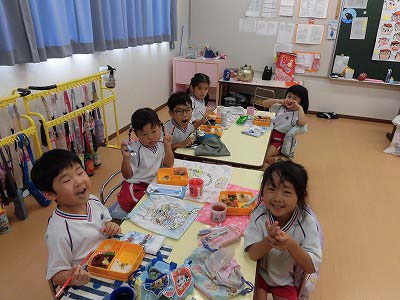 たくさん遊んだ後はお待ちかねのお弁当タイム♡「今からお弁当食べるよ~!」の声に「やったー!!」と叫ぶ子どもたち。とても嬉しそうにお弁当を食べていましたよ♪