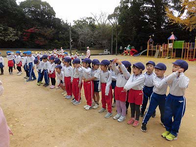 今日も元気にみんなで体操!寒い時期になったので、寒さに負けない丈夫な体づくりを目指して今日から体操後のマラソンもスタートです!!
