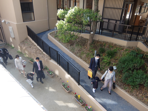 親子で登園の入園式の風景は例年と同じです。