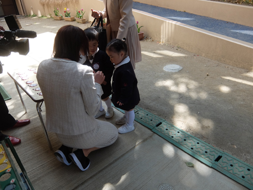 式の中では園長先生の話を聴いて、クラスの先生から一人一人の名前を呼ばせてもらいました。