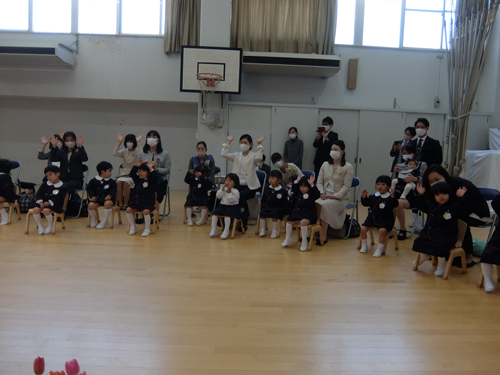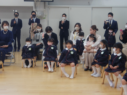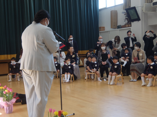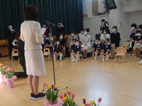 コロナ禍での入園式ということで、今年もクラスごとの入れ替え制になりましたが、とても良いお天気に恵まれました。