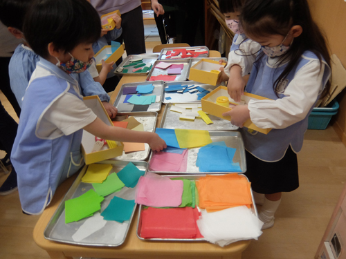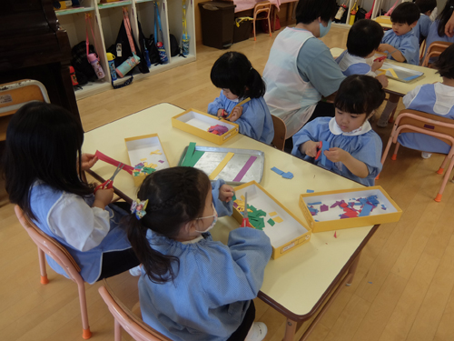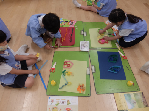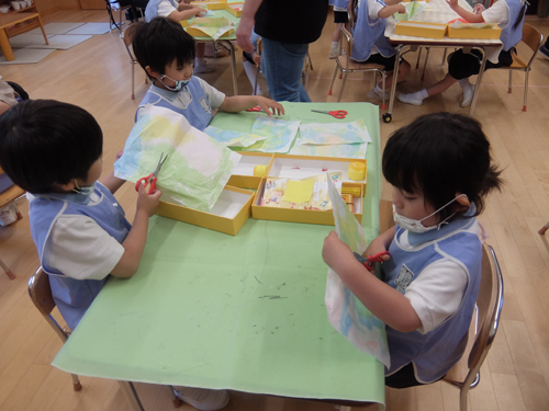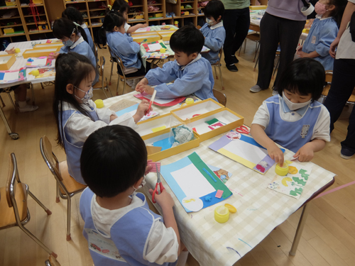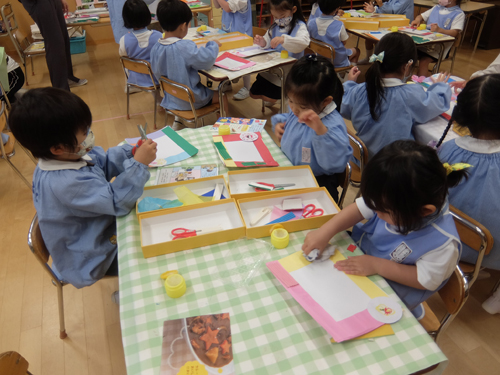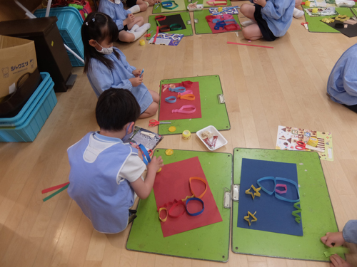 制作活動では鮮やかな色紙等を貼り付けていました。