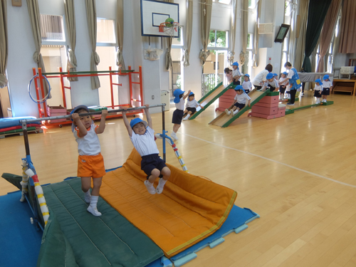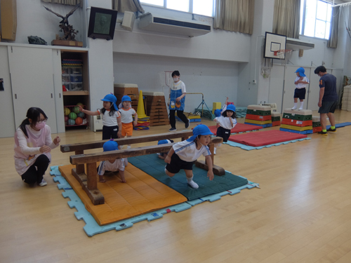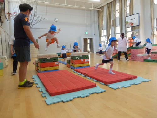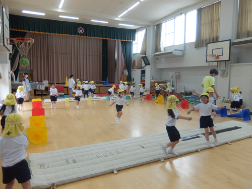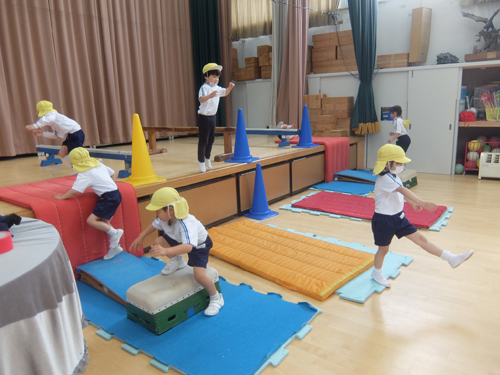 早速にサーキット形式でいろいろな運動に挑戦していました。