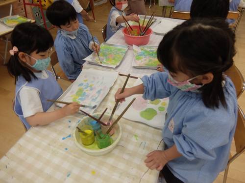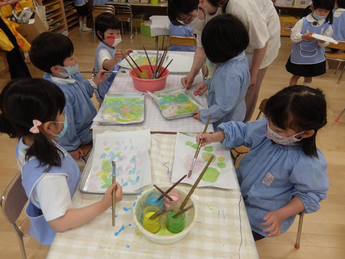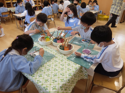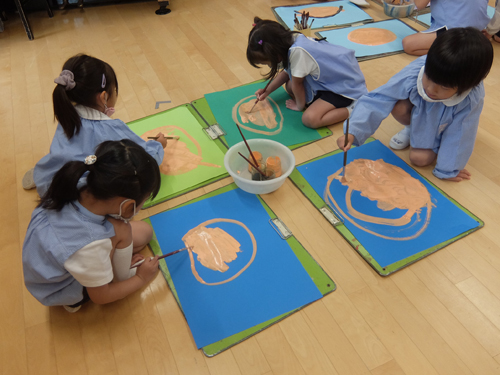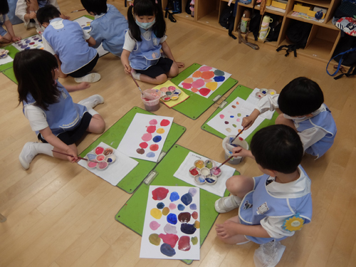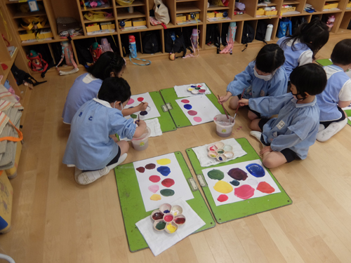 混色でオリジナルの色を作ってみました。自分で色を作るのが楽しそうでしたね。