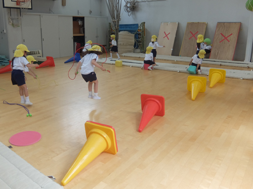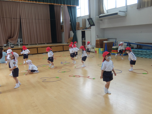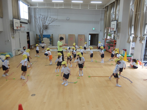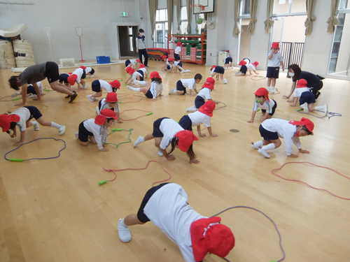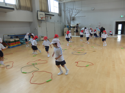 ボールや縄跳びも使って、いろいろな運動に挑戦していました。