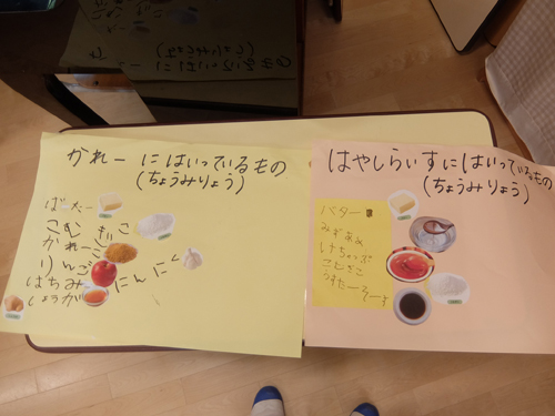 昨日の給食のハヤシタイスが大人気でしたが、ハヤシライスとカレーライスの違いを調べている年長さんのクラスがありました。