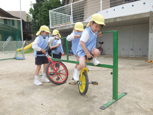 年長さんは今日も一輪車や中当てドッチボールをするクラス、