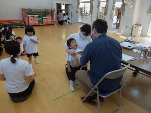 国のQ&Aで、園医さんが了承であれば、緊急事態宣言下でも総合的な健康管理の観点で実施をするということでしたので、予定通りの実施になりました。