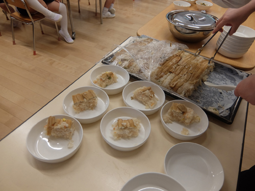誕生会ということもあり、給食の調理員さん達もあなご寿司を作ってくださいました。