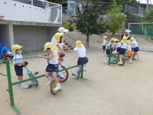 年長さんは一輪車、