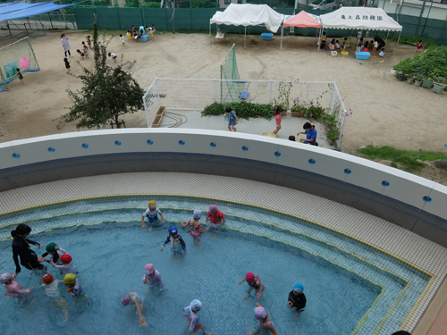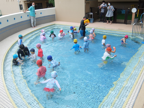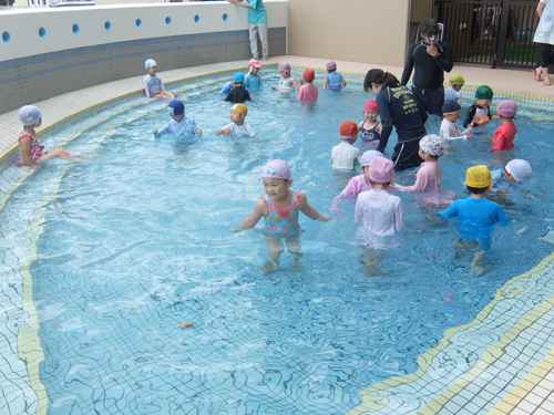 今日も年中さんが、予定通り、全クラスプールに入水しました。