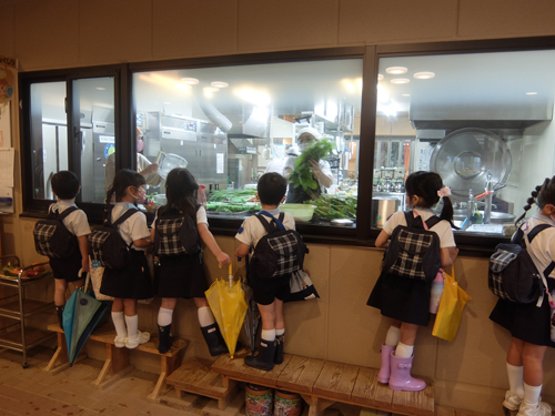 調理前のたくさんの野菜を楽しそうに見ていました。