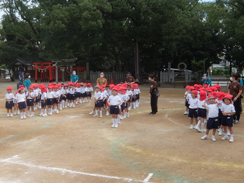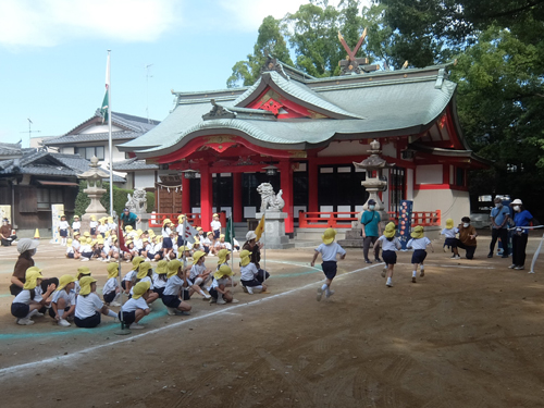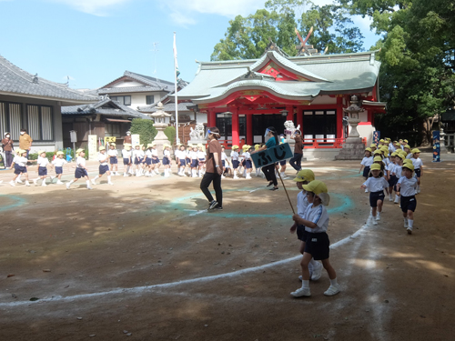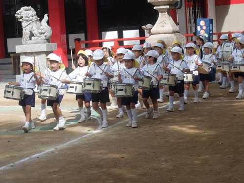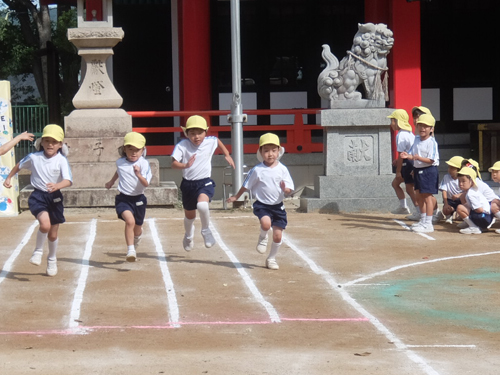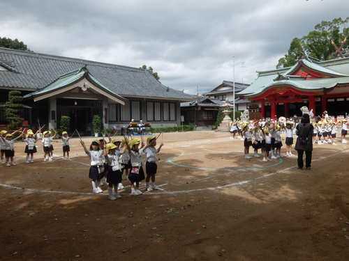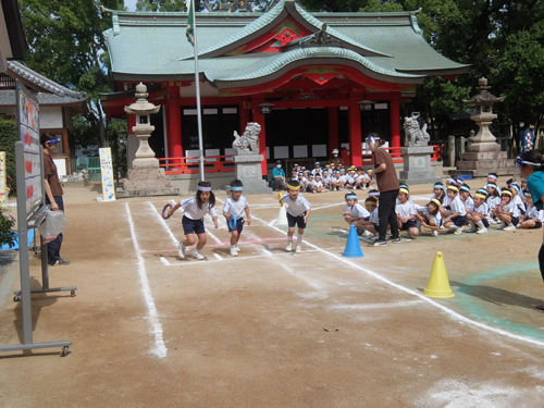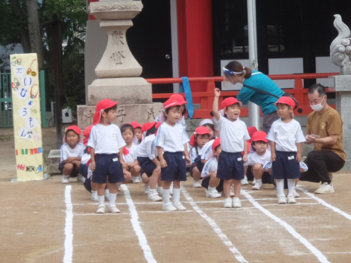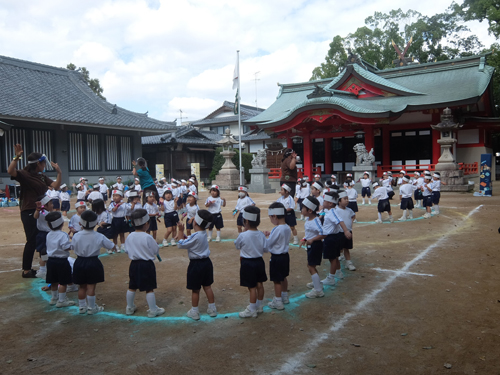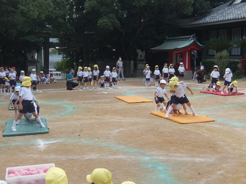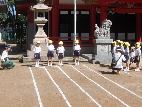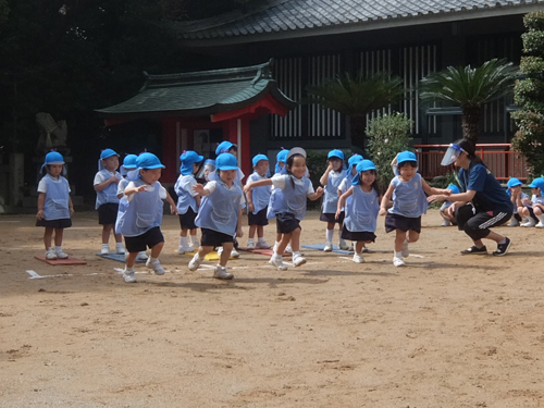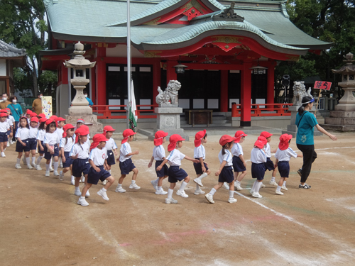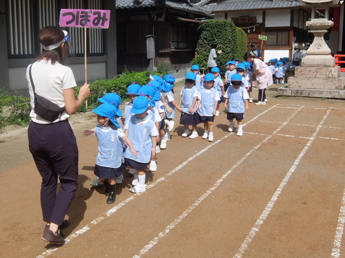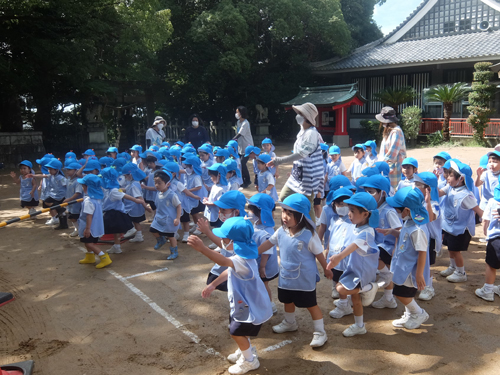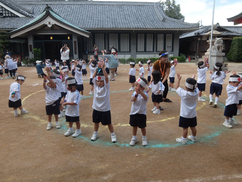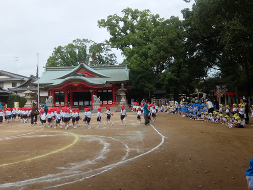 今日は良いお天気で各学年とも境内で運動会に向けての活動をしました。