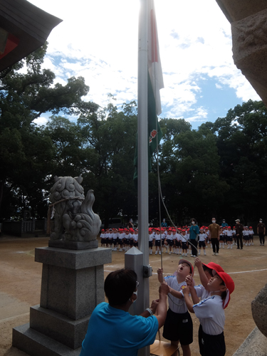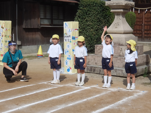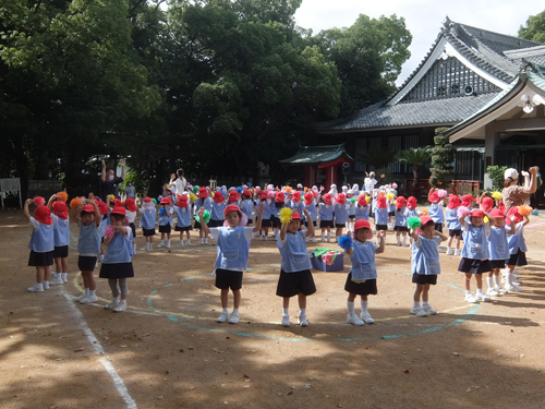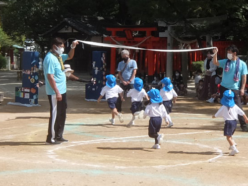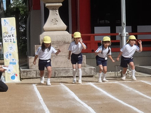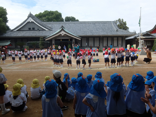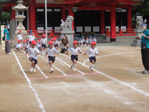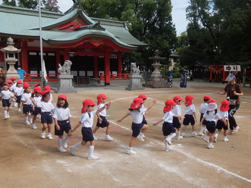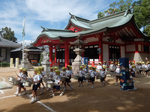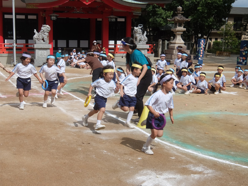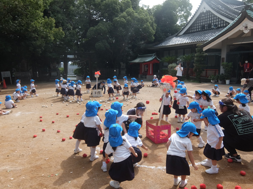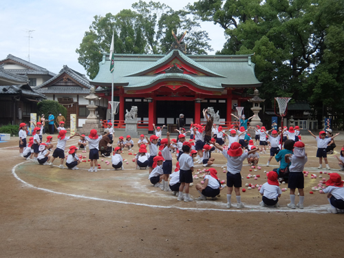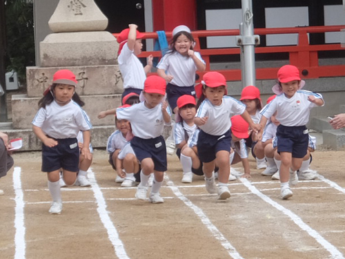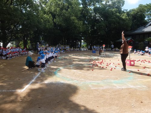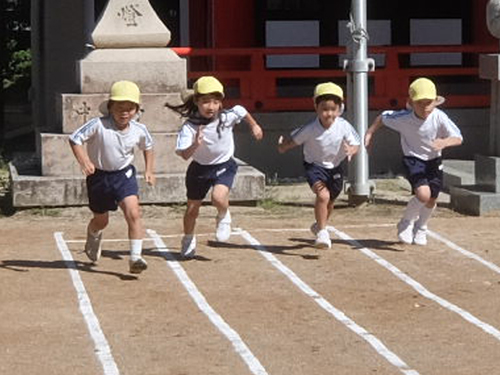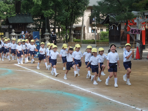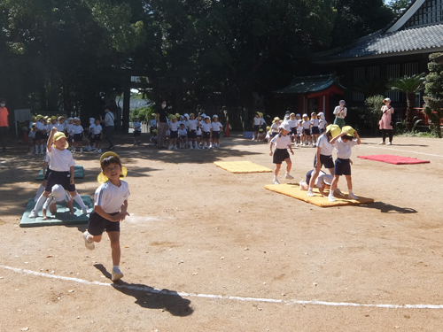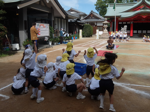 今日は良いお天気で各学年とも境内で運動会に向けての活動をしました。