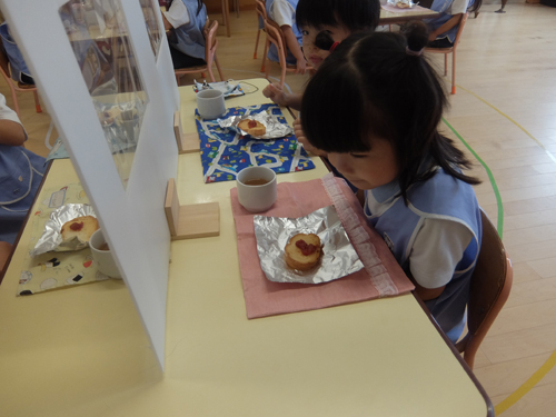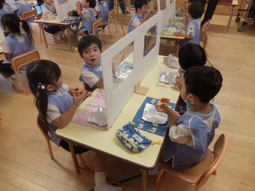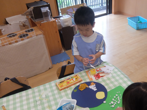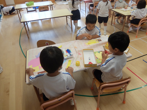 年中さんは折り紙や貼り絵でお月見を表現していました。