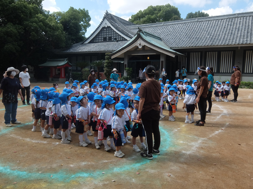 今日は雨予報でしたが,晴れ間ものぞく天気になり、境内で活動ができました。