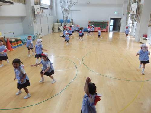 年中さんは体育館で凍り鬼ごっこをしているクラスがありました。