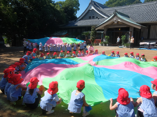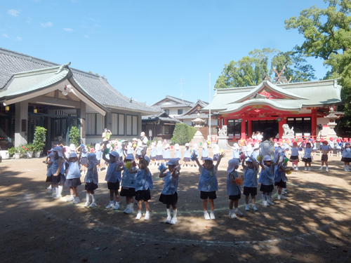 秋晴れの中、今日も境内で運動会に向けての活動をしました。