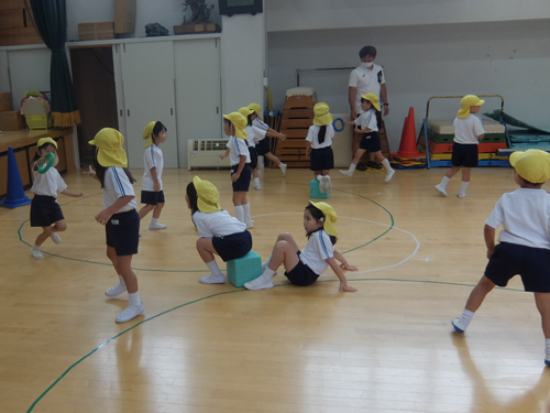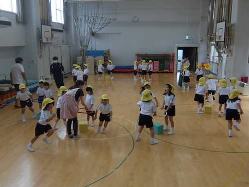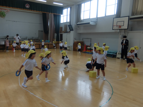 年少さんがリズムダンスを踊ったりと運動会に向けての活動をしました。
