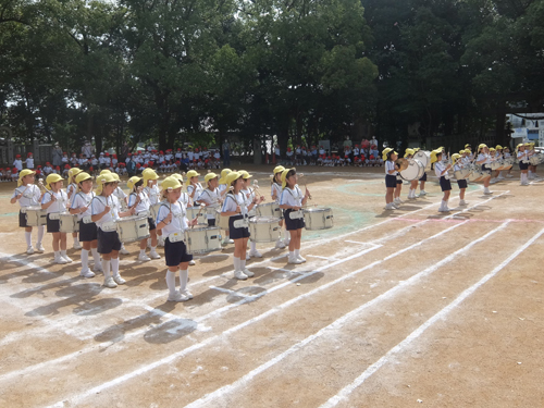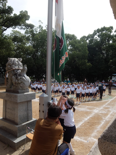まずは開会式の入場行進です。並んで歩く機会も多くなかったので、行進となるとまだまだマイペースですが、それでも列をつくってしっかりと歩いていました。