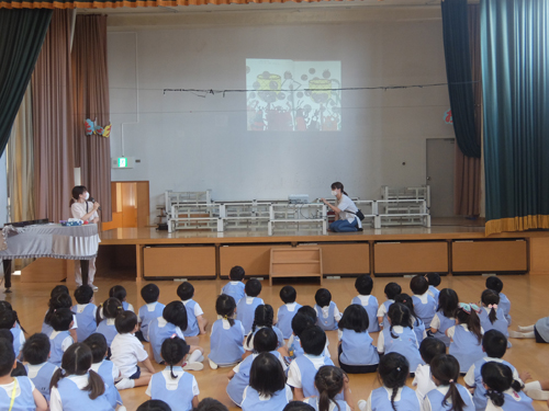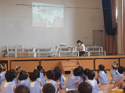 続いてはやはり運動会の絵本をみんなで楽しみました。運動会を2回経験しているだけあって、とても真剣に観ていましたね。