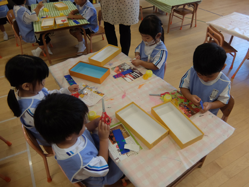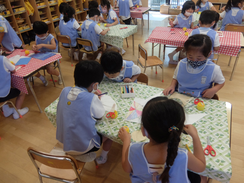年長さんは入退場門や看板に付ける運動会をイメージした飾りを作っていました。