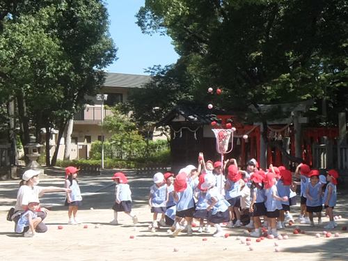 神社参拝をして、園長先生の話をしっかりと聴いてくれました。