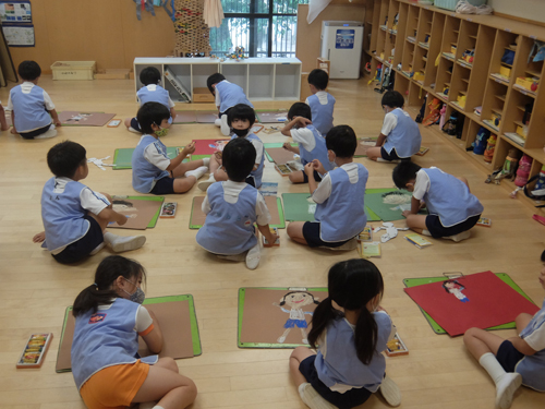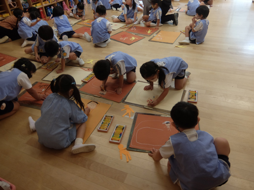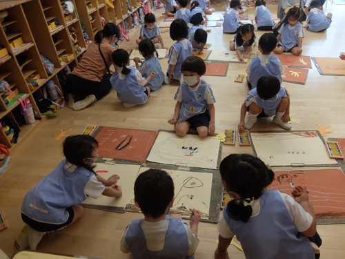 年中さんも運動会の絵を描きました。好きな場面を選んで、描いていました。