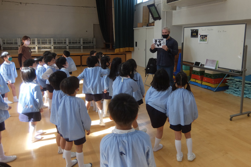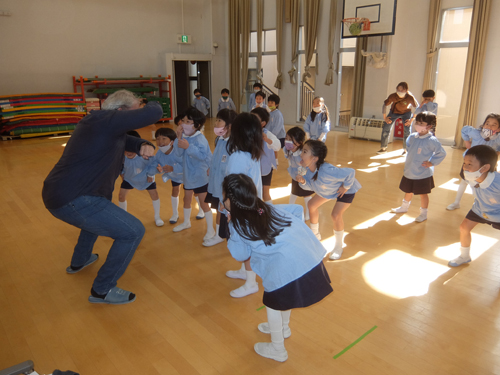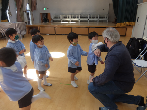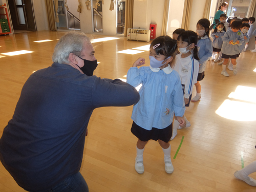 今日は先月に続き、ニュージーランドの方が来て、年中さん年長さんと交流してもらいました。