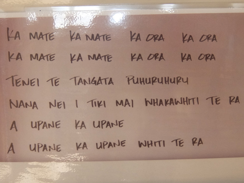 ラグビーのニュージーランド代表が試合前に行うHAKAのダンスの動画を見せてくださり、