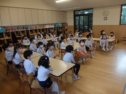 昨日はまだ学年閉鎖だった年長さんも友達と久しぶりの再会です。