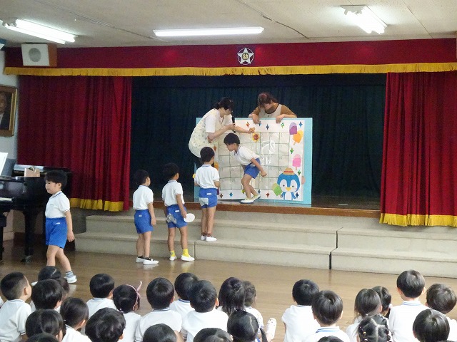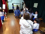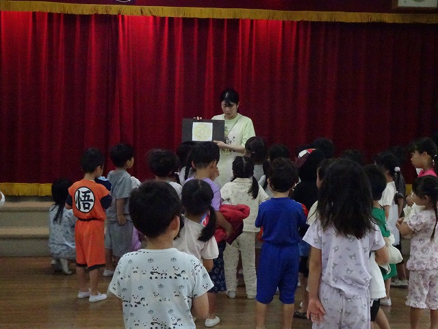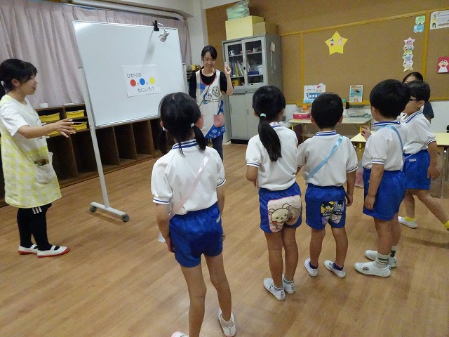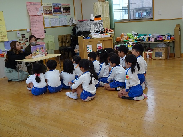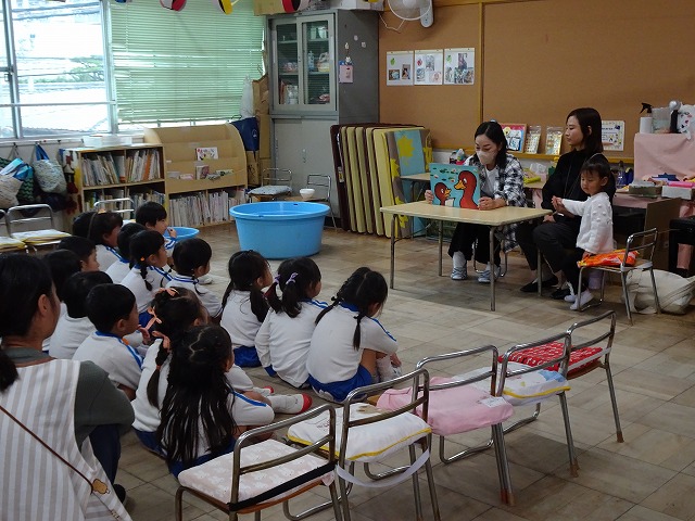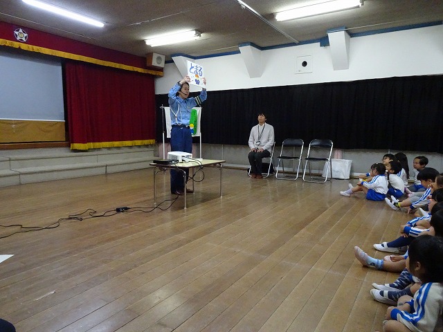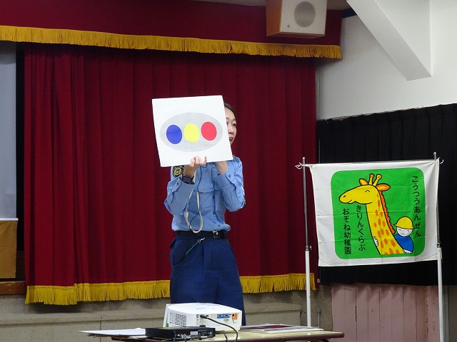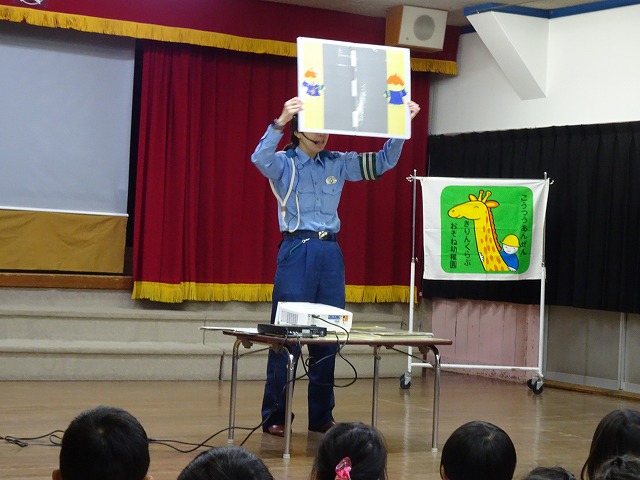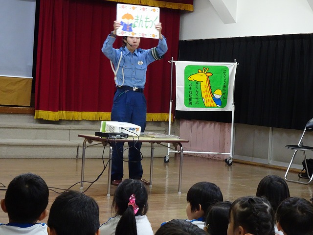 交通安全のお話のDVDを見た後は、お部屋で交通安全係の方からの紙芝居!!
