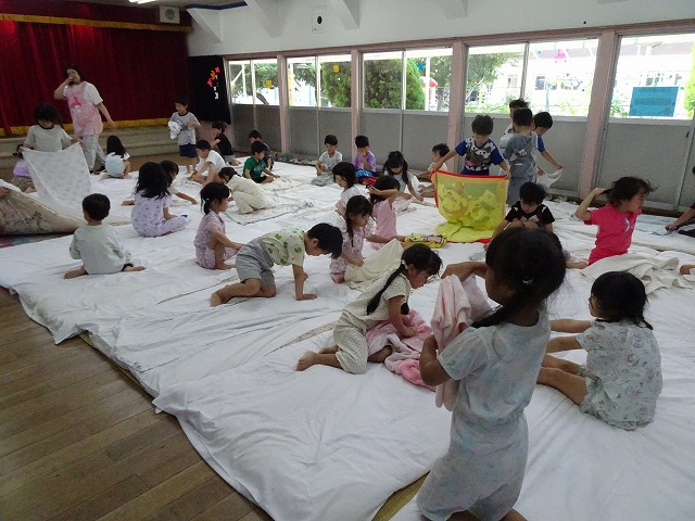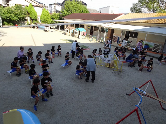 バチを片手に音楽に合わせてみんなでたたきました(*^。^*)