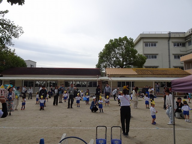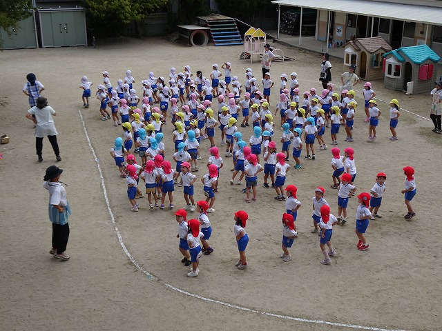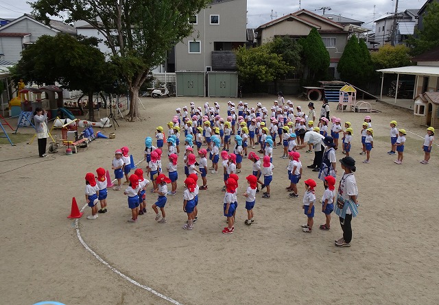 園長先生のお話の次は、全園児で「ワイワイキッズ」の体操を元気にしました!!